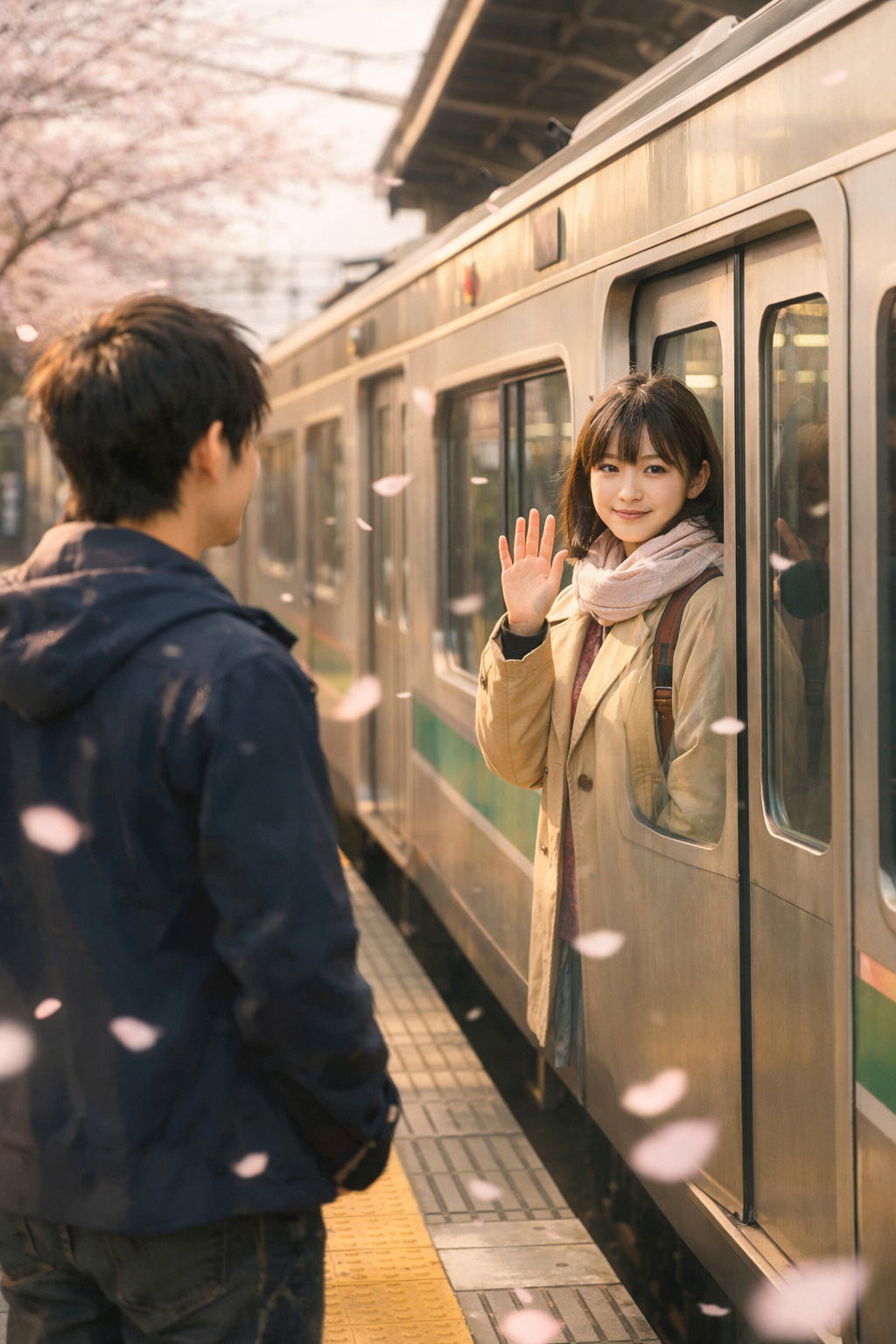駅のホームには、春の名残がまだ残っていた。