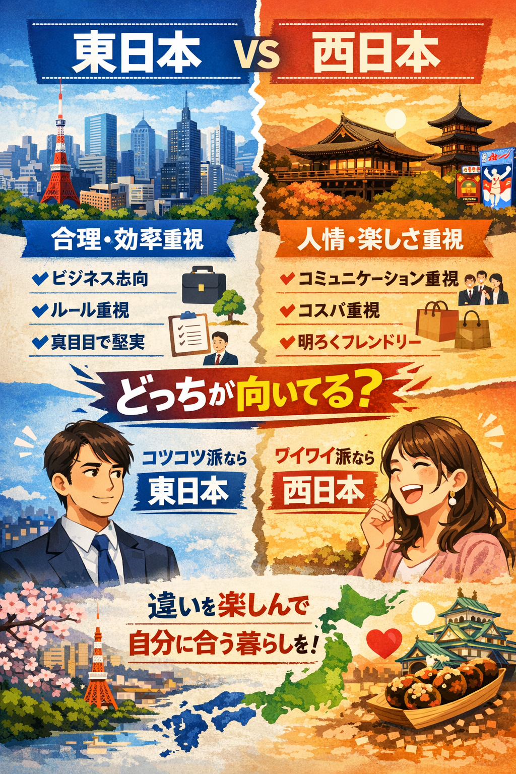 日本は一見すると小さな島国ですが、実は「東日本」と「西日本」では文化・食・言葉・価値観まで大きく異なります。